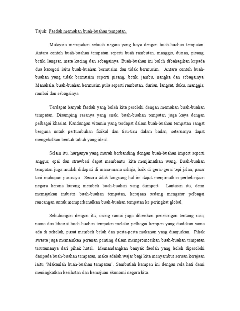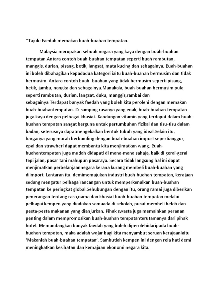 Contoh Contoh Karangan Sekolah Rendah Fakta Kebaikan Buah Buahan Tempatan Pdf